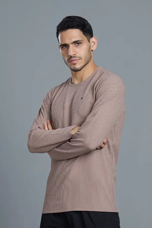 BOOST ROUND NECK FULL SLEEVE T SHIRT - LIGHT BROWN