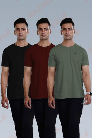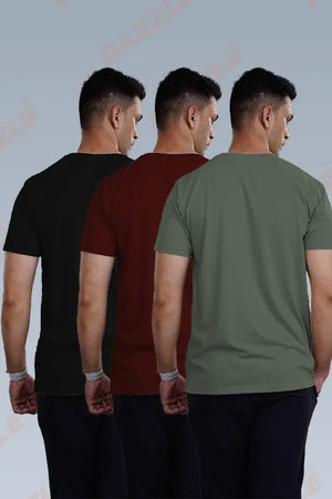 CRAZY ROUND NECK T SHIRTS COMBO PACK OF 3 OLIVE GREEN - MAROON - BLACK