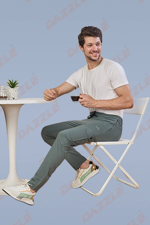 Power Cargo pants are made from Korean cotton that’s lightweight, stretchable, and breathable—far more comfortable than traditional cargos. Featuring classic flap pockets, two secure zip pockets, and styled embossed buttons, they combine function with a sleek look. A 2-inch comfortable waistband, rope detailing with stylish eyelets, and refined stitching elevate the design, making them ideal for both casual and active wear.