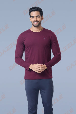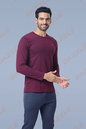 ROUND NECK FULL SLEEVES T- SHIRT - ITALIAN PLUM