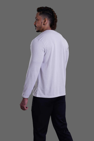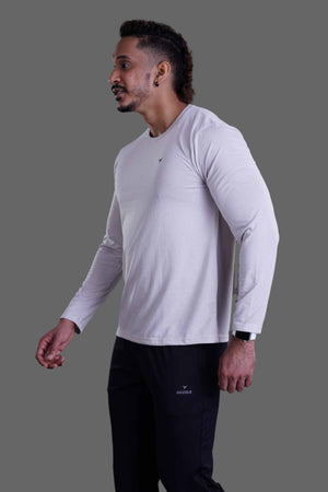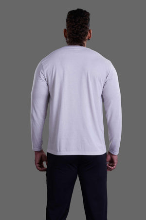 ROUND NECK FULL SLEEVES T- SHIRT - LIGHT GREY