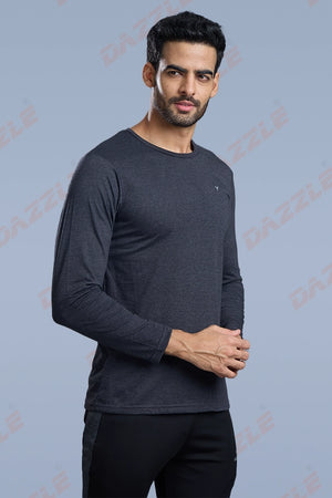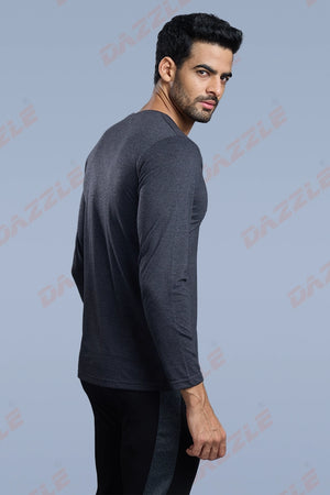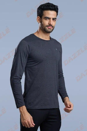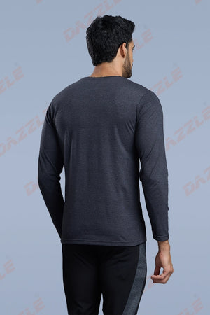 ROUND NECK FULL SLEEVES T- SHIRT - MELANGE BLACK