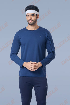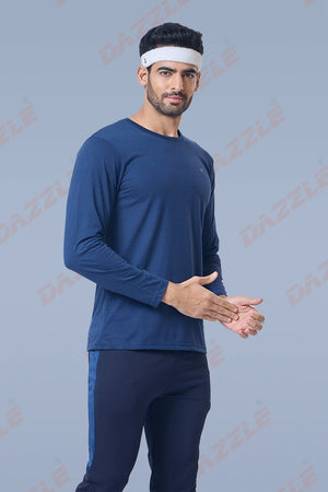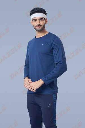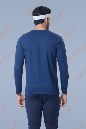 ROUND NECK FULL SLEEVES T- SHIRT - NAVY BLUE