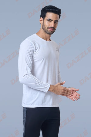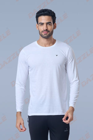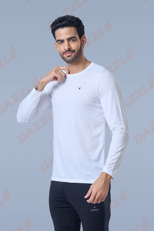 ROUND NECK FULL SLEEVES T- SHIRT - WHITE