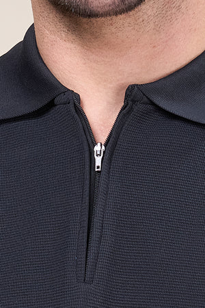 The ribbed collared design gives a premium, structured look that blends casual style with athletic appeal. Half sleeves provide comfortable coverage, making it perfect for workouts, travel, or daily wear.